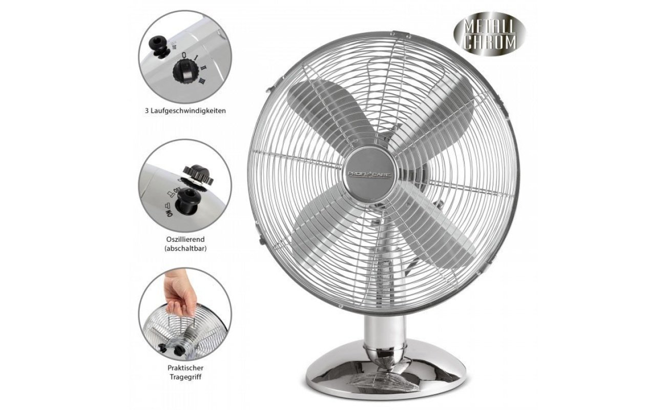 ProfiCare Metal Masaüstü Vantilatör 25cm (Sessiz Çalışma)