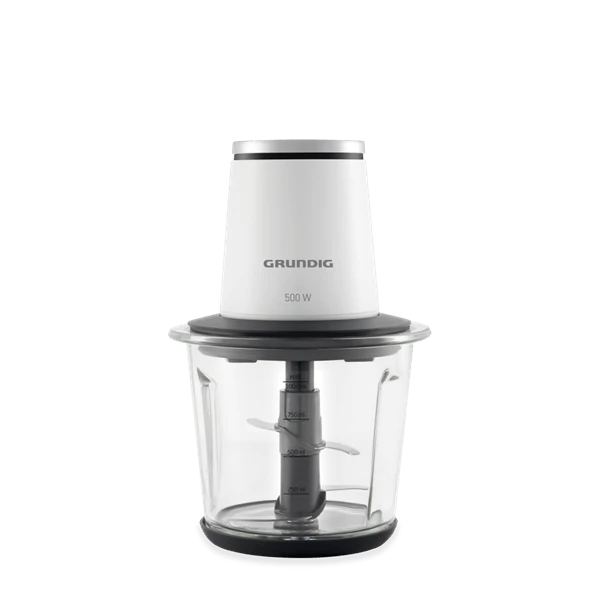 Grundig CH 6860 Doğrayıcı Rondo, mutfaktaki işlerinizi hızlandıracak kompakt ve güçlü bir cihazdır. 500 W gücündeki motoru ve paslanmaz çelik bıçakları ile hızlı ve etkili doğrama sağlar. 1000 ml kapasitesindeki cam doğrama kabı, geniş hacmiyle bir seferde daha fazla malzemeyi işlemeye imkan tanır. Tek tuşla kontrol edilen bu doğrayıcı, kullanımı son derece kolay ve pratiktir.