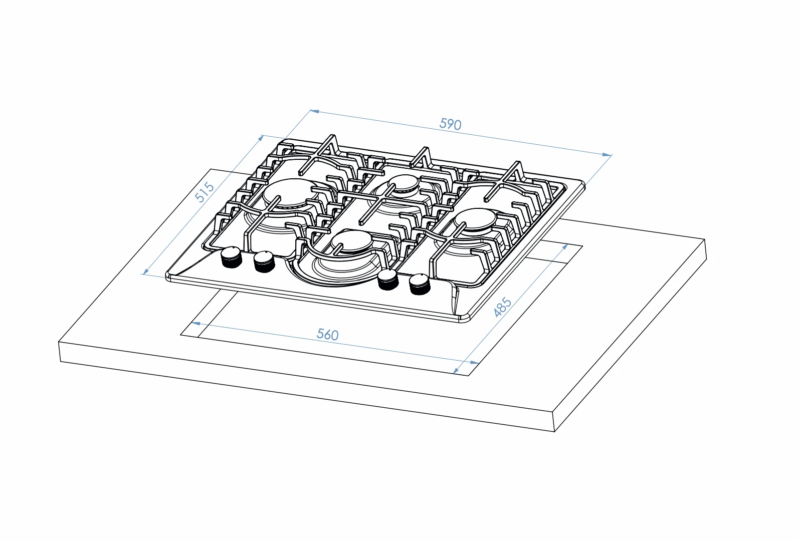 Tezgah kesim ölçüleri : D*G 485*560 mm