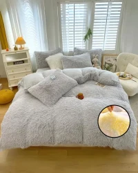 Peluş Çift Renk Nevresim Takımı Çift Kişilik – Gri