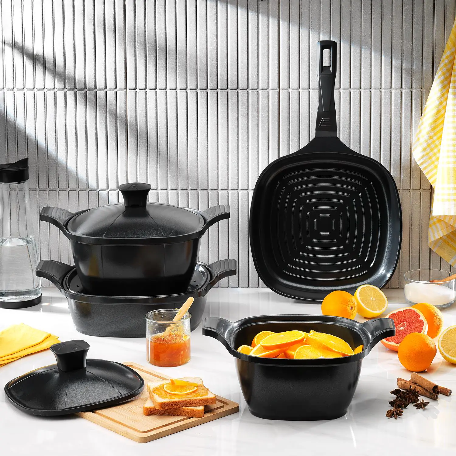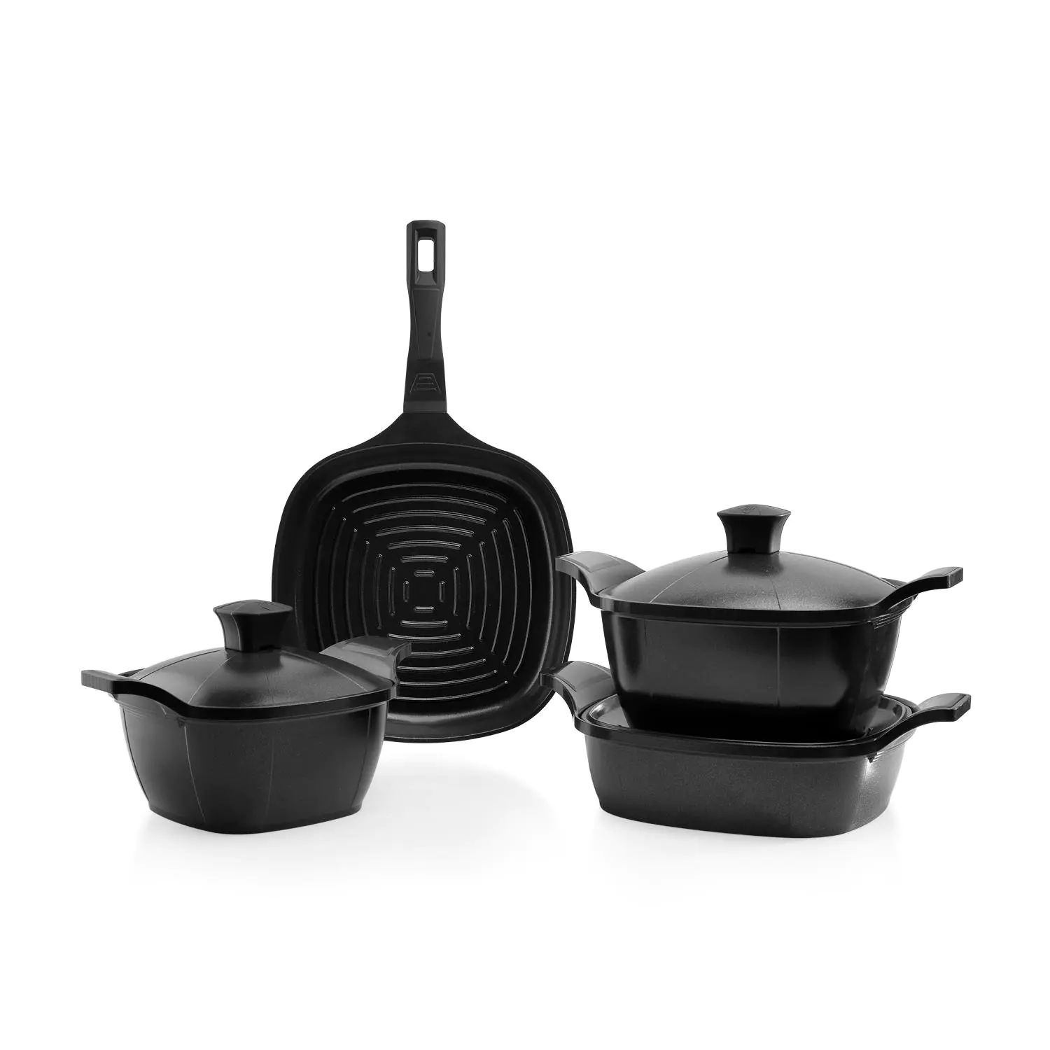 Schafer Felsen Kare Seramik Tencere Seti 7 Parça-Siyah