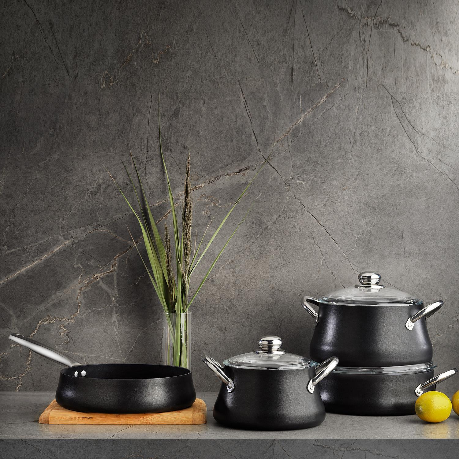 Schafer Ottawa Yanmaz Yapışmaz Tencere Seti 7 Parça-Siyah